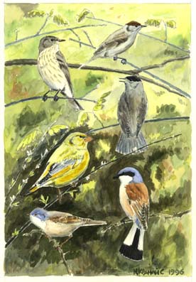 |  |  Grünfink  Neuntöter  Grauschnäpper  Mönchsgrasmücke  Dorngrasmücke Grünfink von der Grösse eines Haussperlings; weist einen kompakten Körperbau auf